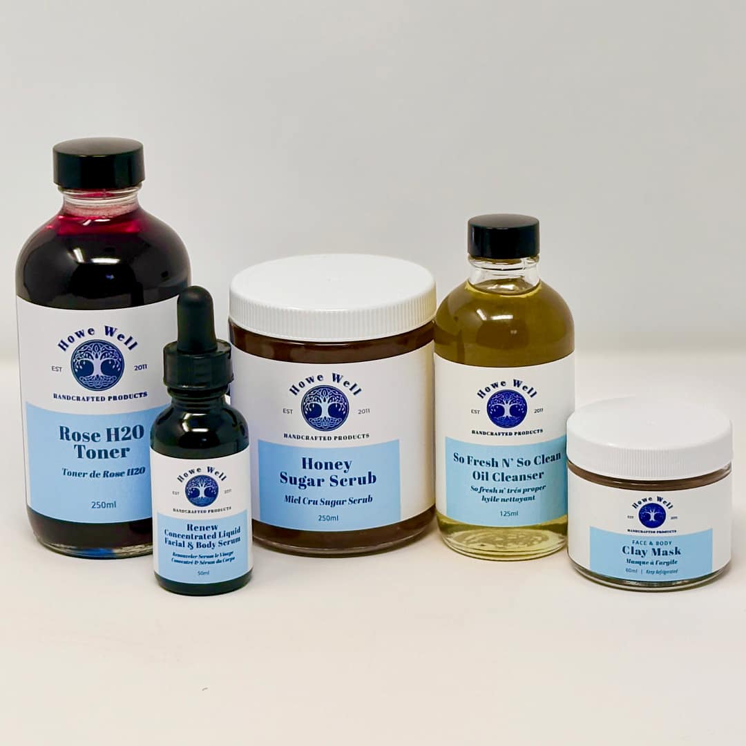I have struggled with my skin since my early teens. I tried everything I could to heal my acne, from products on the drug store shelves to prescriptions from my doctor. Howe Well’s facial set was an answer to a prayer – these products helped me regain confidence and feel beautiful in my own skin again. Although it did take some time to see the improvements I wanted, I felt a huge difference in my skin right away. My skin is oily and dry at the same time, and I was never really sure what my skin needed. The answer: these products. Every product in this set is amazing and they work together. The oil cleanser, toner, and facial serum helped balance and restore my skin, while the honey scrub and clay mask helped with healing existing acne and scars. Although I don’t think I can choose one product as a favourite (they are all wonderful), the clay mask is a top contender. Not only is it an amazing detox, it is awesome as a spot treatment too! These products are effective and safe. I love that every morning and night I nourish my skin with high quality, natural ingredients. Truly life changing!