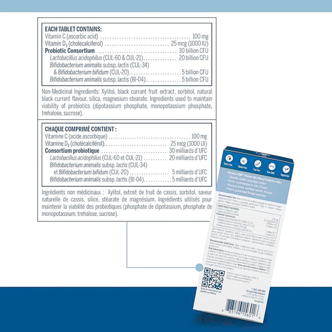 Non-Medical Ingredients: Xylitol‚ blackcurrant fruit extract‚ sorbitol‚ natural blackcurrant flavour‚ silica‚ magnesium stearate. Guaranteed to contain no added wheat‚ gluten‚ soy‚ artificial colouring or flavouring‚ antimicrobial preservatives or dairy products.