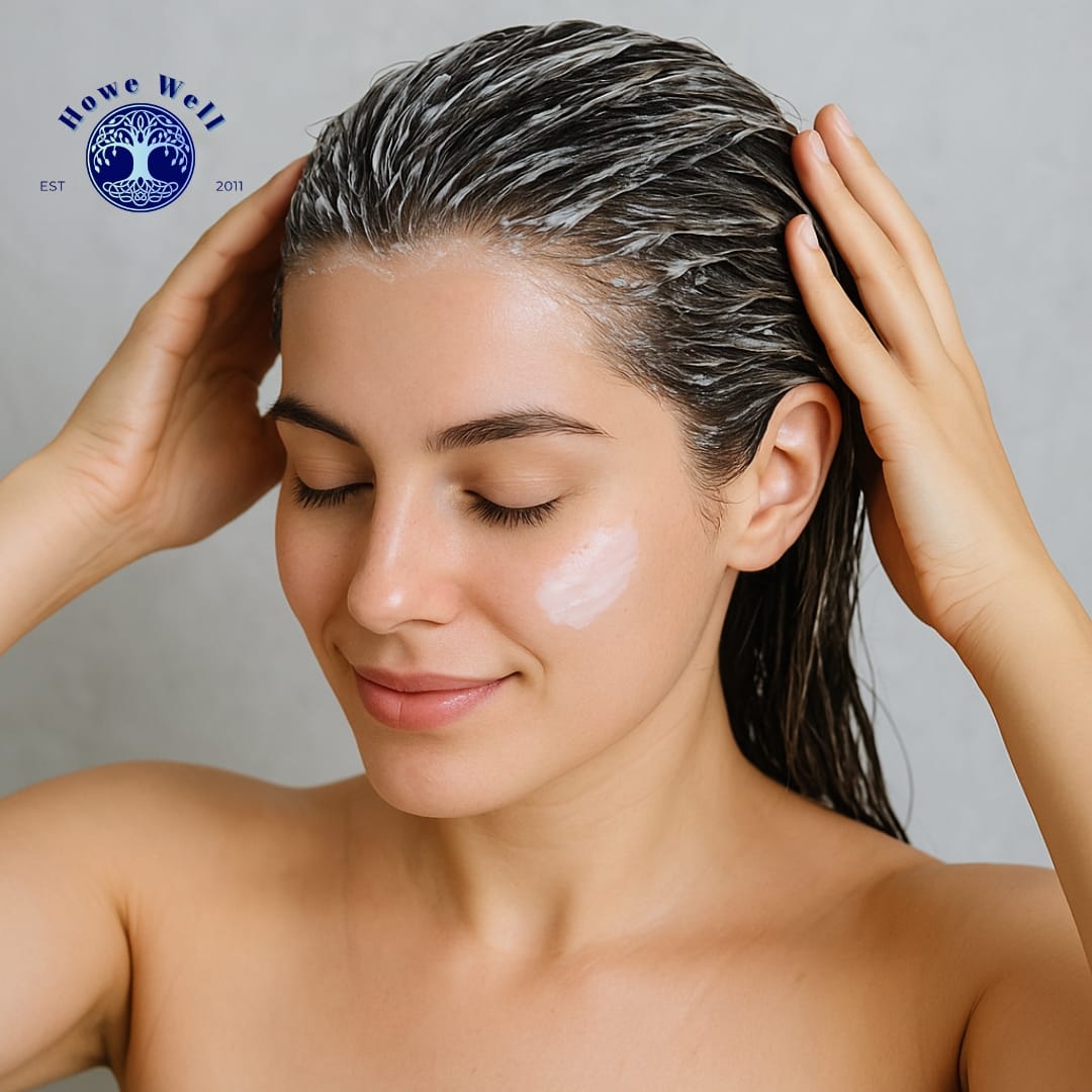 Using your fingertips, massage a generous amount into the scalp with gentle, circular motions for 5–10 minutes.